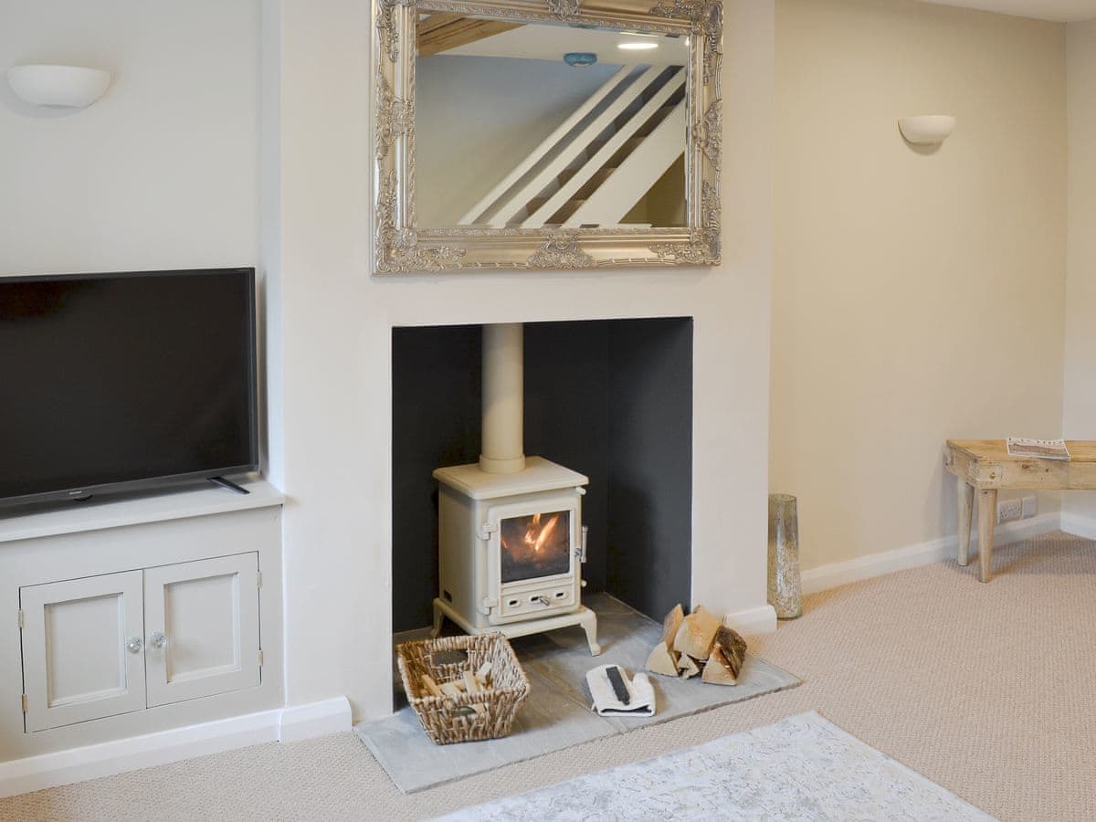 Cosy living room with wood burner and 42" Smart TV